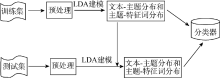 基于LDA模型的文本分类方法利用LDA模型挖掘文本中的隐含主题信息, 通过对文本集建模, 将每个训练集和测试集文本表示为隐含主题空间中的向量, 在训练集文本-主题矩阵中训练SVM, 构造文本分类系统。整个分类框架如图2所示, 主要包括预处理、LDA建模、分类器构造、分类过程和性能评估5个部分。