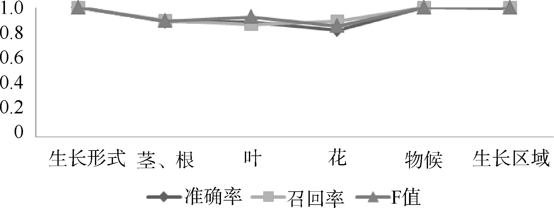 物种描述具有基本一致的模式。以植物描述为例, 一般都是从生长习性、根、茎、叶、花、果实描述到物候学特征。对于较复杂的器官结构, 则依其构成进一步展开。譬如, 对叶的描述会细化至叶柄、叶片等部位。因此, 物种描述信息在整体上呈倒置的树形结构。正因为如此, 以语句为单位的物种形态特征提取可转化为逐层分类问题。