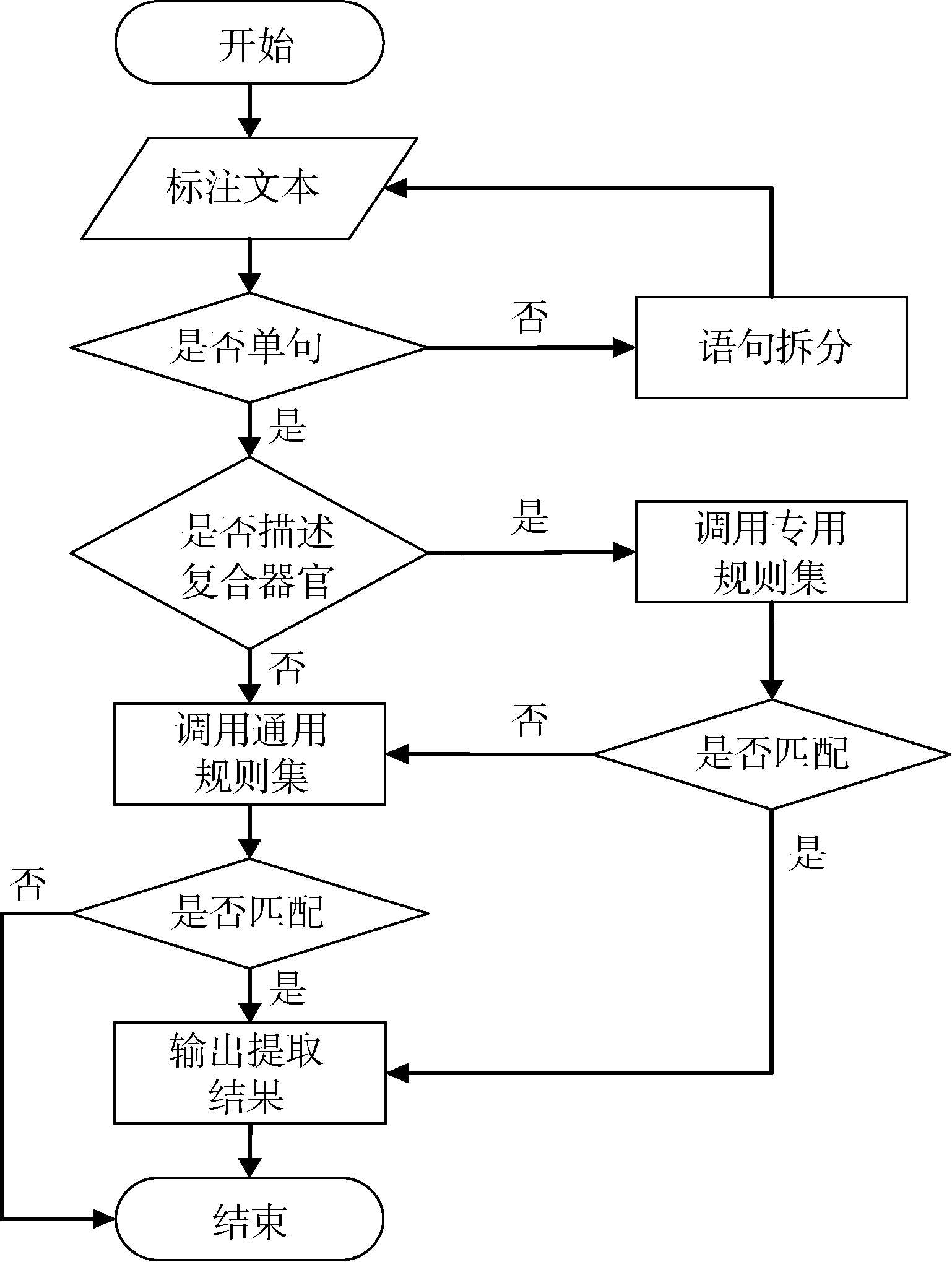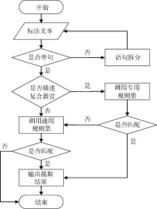 2)专用规则, 即针对叶、茎、花这三种复合器官的一些特有描述形式而定义的提取规则。譬如, 在描述花的语句中出现“‘植物解剖结构’+‘数量’”的形式, 则可推断其为描述花内部结构的数量, 抽取时需补充信息并合理设定语序。例如, “退化雄蕊2”的表示结果为“花”has_part [“退化雄蕊”has_quantity“2”]。