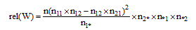 3)相关度。相关度反映相邻字之间结合的紧密程度。字串W的相关度如下所示: