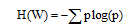 4)信息熵。信息熵可以用来界定词与词之间的边界。词W的信息熵如下所示: