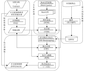 本研究将中文植物物种多样性描述性文本的信息抽取分解为4项任务: 构建领域本体、建立训练集数据、文本预处理、标注和抽取, 如图1所示。