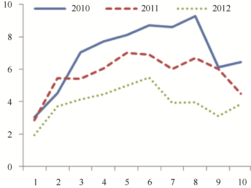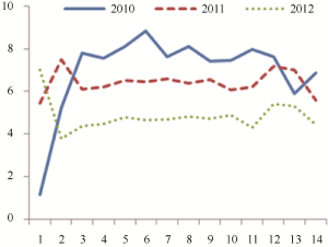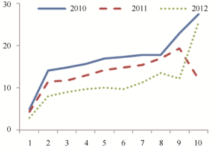 2010 | 2011 | 2012 | 三年 | 2010 | 2011 | 2012 | 三年 | 相关度r | |